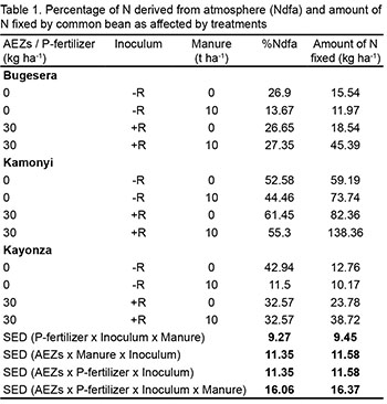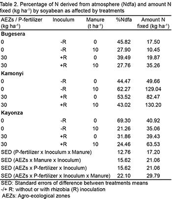 This study showed that better management leads to substantial amounts of N2 fixed across the three agro-ecological zones, for both common bean and soyabean. Targeting of legumes to different environmental conditions should consider management as a key driver.