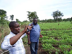 In his words: “The transformation started when I attended a Pre-Season Training in 2013 that was organized by the N2Africa partner MARKETS II. I learnt about new production technologies for soyabean production in that training that changed my mindset completely”. He explained that he acquired all relevant information on the best agronomic practices for the cultivation of soybean and obtained a package of improved seeds, fertilizer and inoculants (supplied by N2Africa through its partner MARKETS II) which were planted on demonstration and later on his adaptation plots. As an eager and curious farmer, he decided to cultivate four hectares of his own land close to the demonstration plot with soyabean variety TGX1448-2E, which is considered a local variety because it had been cultivated for a very long time.