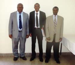 I did my MSc in Sustainable Soil Resource Management sponsored by N2Africa. After successfully following one year of course work I worked closely with Dr Paul Woomer in data collection, analysis and thesis writing. Paul became a personal friend who I will never forget. Under the supervision of Dr Paul Woomer, Prof Keya and Prof Nancy Karanja (University of Nairobi) I conducted research on Quality Control of Legumes Inoculant on Bean and Soyabean in East and Central Africa at the MIRCEN lab, University of Nairobi. On the photo from left to right: Prof Shellemiah Keya, the university supervisor, Isaac Balume, Dr Kironji, chairman of LATMAT Department Faculty of Agriculture /University of Nairobi |