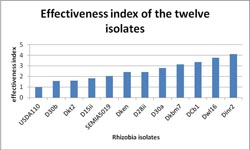 The first step of my work, collection and isolation of Rhizobia strains across different ecologies in South Kivu, has been completed. A total of 107 rhizobial isolates were isolated and characterized by BTB and Congo red reaction. The strains were then authenticated as rhizobia by plant infection method. Thereafter, the isolates were screened in the greenhouse, first in sterile sand in adapted Leonardβs jars. The effectiveness index was calculated by dividing the shoot weight by shoot weight of USDA110 or nodules weight of considered strains by nodules weight of USDA110. In this experiment, a highly significant difference between strains was observed. Ten percent of the isolates was highly effective compared to the commercial strain USDA110 and was selected for testing in potted field soils in the greenhouse. Soils from two sites were selected and two varieties were used. The total N of these soils was predetermined and MPN performed.