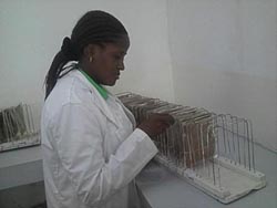 My name is Bintu Ndusha, I am a Congolese student at University of Nairobi with my studies funded by the N2Africa project. I am currently doing my research on my project in Rhizobiology titled "Effectiveness of Rhizobia strains isolated from South Kivu soils in nodulation of Soyabean (Glycine max)". The project involves collection and isolation of rhizobia strains available in South Kivu soils, screening them for effectiveness in the greenhouse and in the field, comparing them to available commercial strains (USDA110 and SEMIA5019) and evaluating their effectiveness on two varieties of soyabean (a promiscuous and a specific variety). The aim is to obtain elites strains for inoculation of soyabean. |