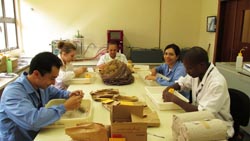 Soyabean nodules from 15 locations in Mozambique were brought to Brazil in April 2013. From the nodules, a total of 105 isolates were obtained, 7 from each location, and screened for symbiotic efficiency in the greenhouse at Embrapa in December 2013. The trial was harvested in January 2014, nodule counts were completed in February 2014, plant dry weight was measured in March 2014 and total N content was determined in April 2014. Data analysis has just commenced. Amaral Chibeba, who started his studies at Londrina State University, in Brazil, in August 2012. |